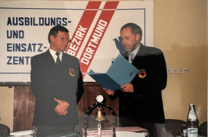 Bernd Hauptmeier erhielt die Ehrennadel des DLRG-Landesverbandes Westfalen in der Ratssitzung des Bezirks Dortmund aus der Hand des Landespräsidenten Klaus Brings.